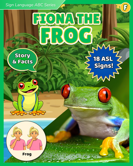 Fiona the Frog is the sixth book in the Sign Language ABC Series — a playful A-to-Z collection that blends story time, real animal facts, and early communication supports.